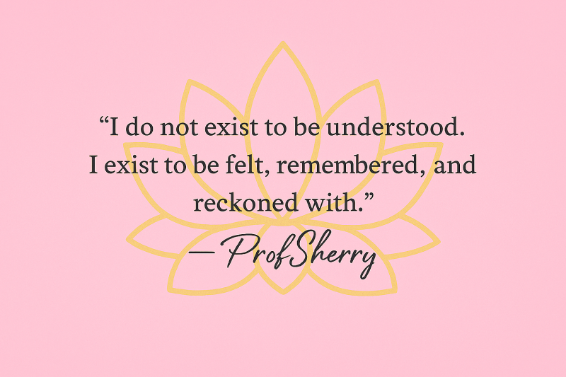 Welcome to ProfSherry.com—your sanctuary for intentional growth, radical clarity, and soul-rooted transformation. I’m ProfSherry: transformational academic, empowerment mentor, and spiritual strategist. For over two decades, I’ve guided learners, leaders, and legacy-builders toward unapologetic evolution—through education, mentorship, and now, spiritual realignment.